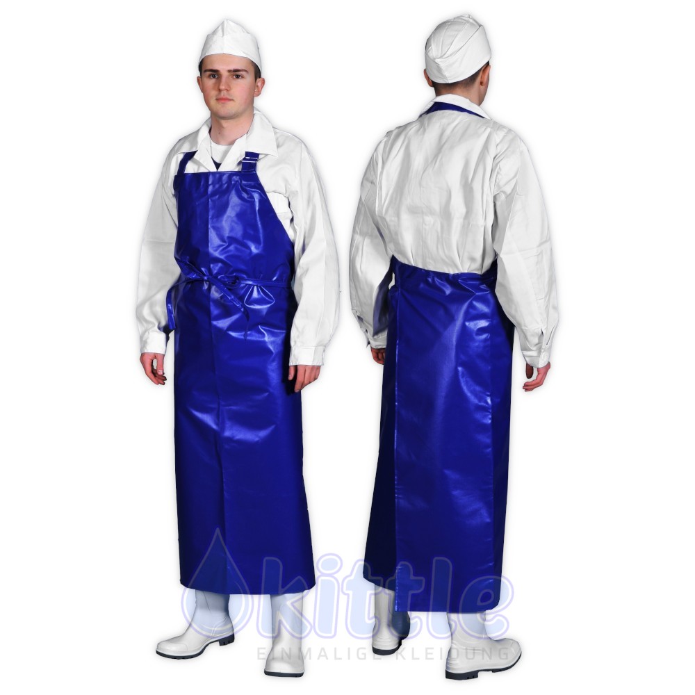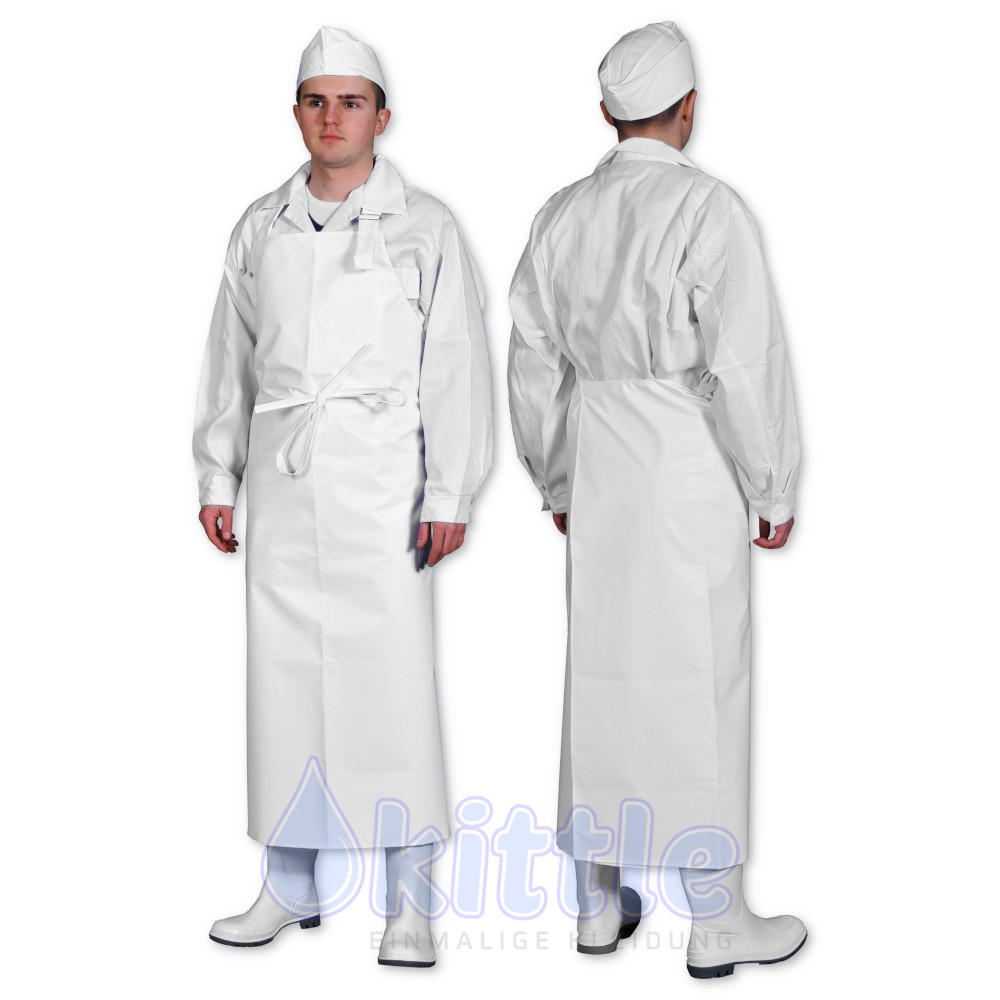 A-Schürze (Größe 110 = M, 120 = L, 130 = XL) aus polyurethanbeschichtetem Polyestergewebe, mit traditionellem, vorne reguliertem Gurt am Hals. Das Gewebe weist vollkommene Schutzeigenschaften auf und findet Anwendung in der Lebensmittelindustrie und benachbarten Branchen. Die Schürze schützt vor Wasser, Fetten, schwachen Säuren, hat Attest der Staatlichen Anstalt für Hygiene in Warschau für Kontakte mit Lebensmitteln. 2- oder 10-Stück-Verpackung. Die Schürze kann durch Annähen eines 70 cm x 70 cm Quadrats gegen Zuzahlung von 7,00 PLN verstärkt werden.